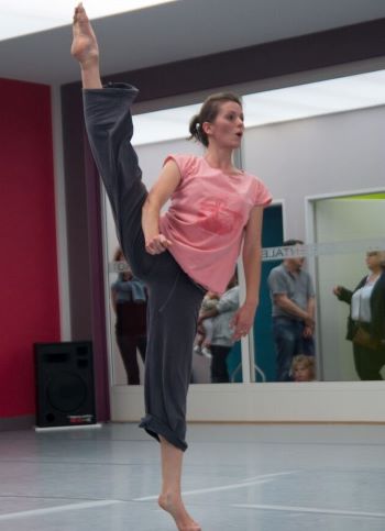 Dans un deuxième temps Emilie axera le travail sur l’élan du mouvement, son engagement dans l’espace, son rapport au temps, sa musicalité.