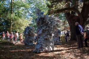 Etre de chair et de papier, créature mystérieuse, être poétique et fantasmagorique aux atours drolatiques, Zool, devenu Zooooool par ses effets d’amplification et de multiplication, nous invite à découvrir des tentatives d’accomplissement et de faux rites de passages issus de notre société moderne, dans le cadre magnifique des jardins du manoir de la Touche. Tour à tour minérales, primitives et animales, ses métamorphoses révèlent un être en perpétuelle reconstruction. Doit-on prendre Zooooool au sérieux ? Sans doute pas. Sans doute un peu.