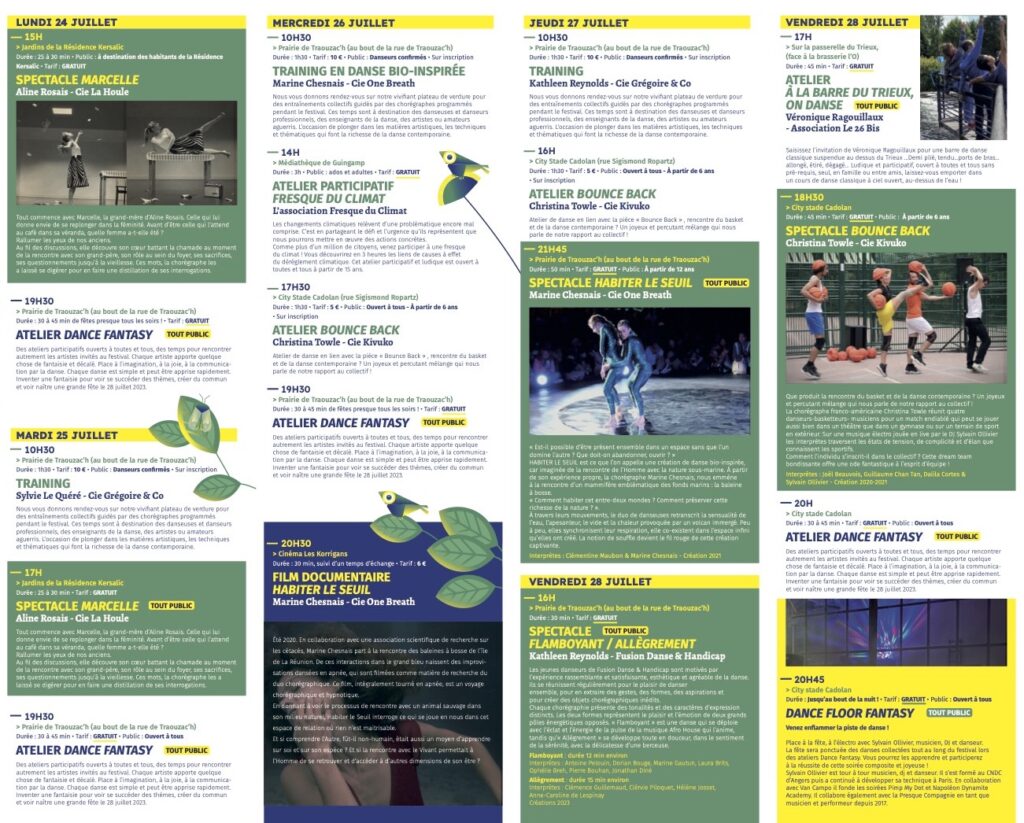 Dans une dynamique participative et inclusive, entourée de bénévoles et partenaires, cette édition est élaborée par la Cie Grégoire & Co – LE LIEU. Elle poursuit son engagement d’une accessibilité à l’art et à la culture pour toutes et tous. Les rendez-vous sont proposés à des tarifs peu élevés, prix libres ou gratuits. »